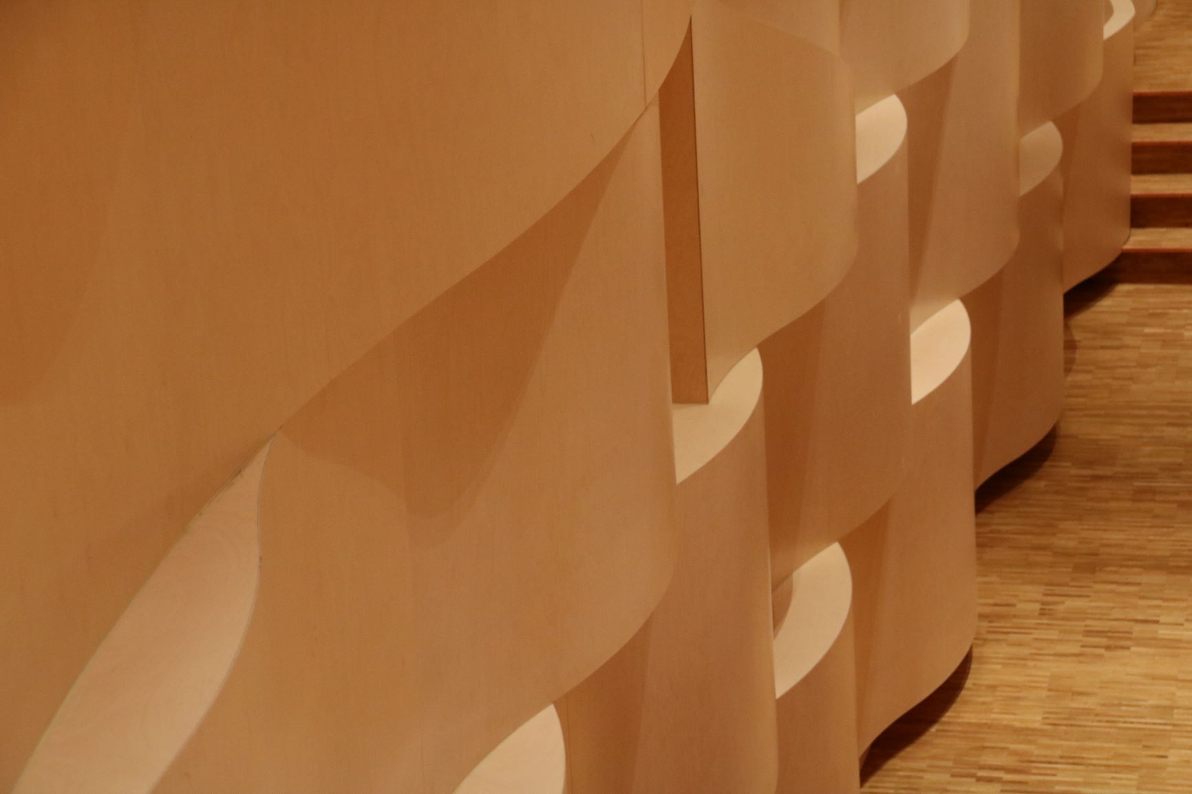 Kui paneelidest hakati lainekujulist mustrit kokku panema, jäid paneelitükkide vahele vuugid. Proovisime neid algul kinni panna tihenditega, aga siis selgus, et vuugid tuleb pealtpoolt täita silikooniga. Ehitajale oli see suur lisatöö, aga ilma selleta kannatasid pindade akustilised omadused.
