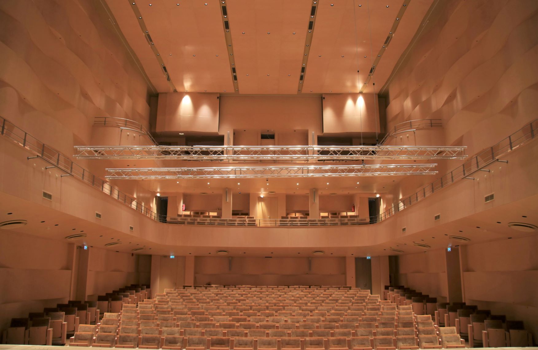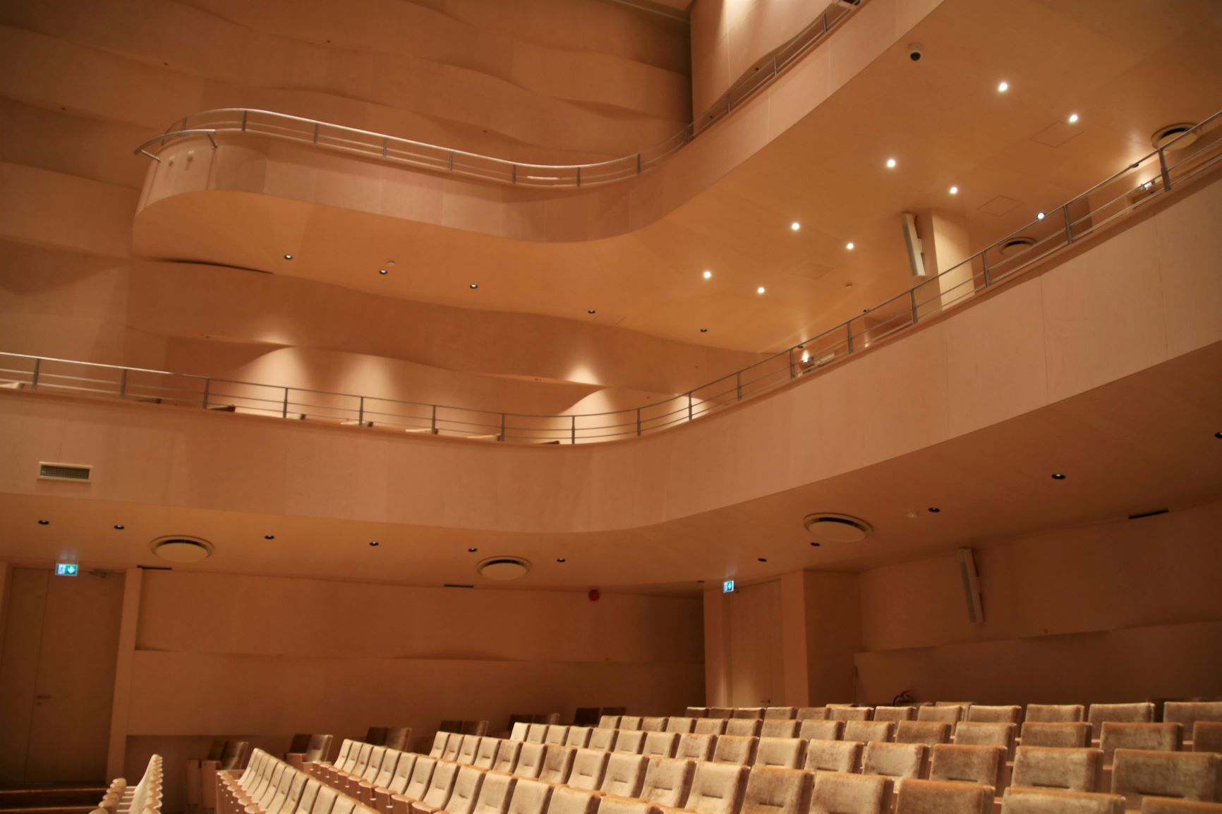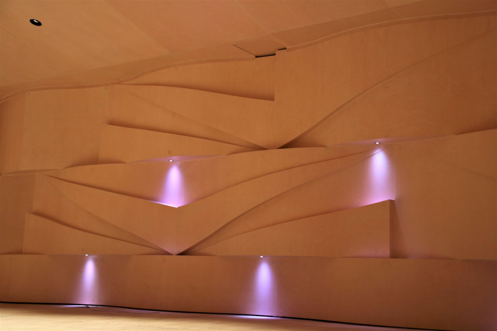 Saali on kavandatud naturaalne akustika, elektroakustilise lisandusega. Saali sisearhitektuurne arhitektooniline põhielement on mahulised lained. Lainekujundid on paigutatud horisontaalselt, sest nii liigub ka heli, saaliosas pikema amplituudiga, laval lühemates ja erinevates vormides. Lainekujundit võib vaadelda nagu helilainet, merelainet või ka kui liivadüüni. Tekivad seosed ka viiuli või tšello kõlakasti kujuga.
