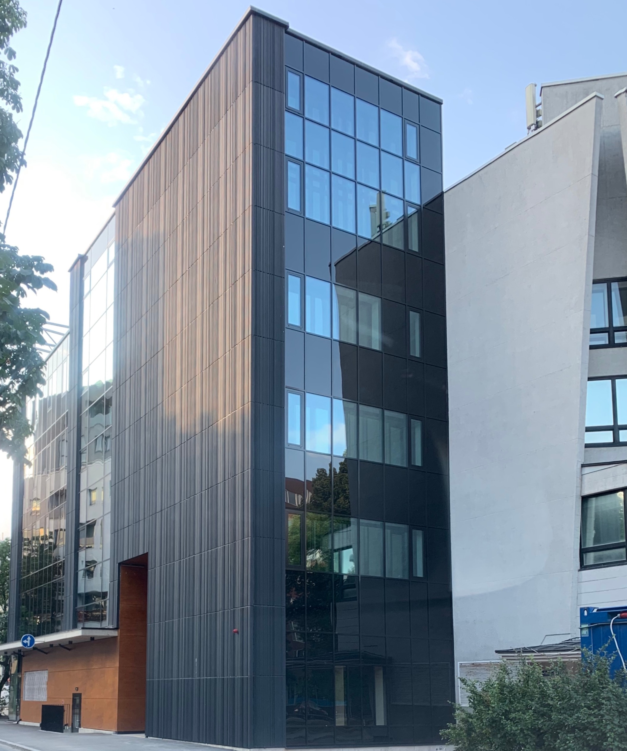 Võtsime siis avalikkuse ja TLA survel veidi fassaadides vunki lisada. Lõplikus lahenduses on kasutatud kontrastiprintsiipi, kus Rävala puiesteel kulgevale põhiosa valgele horisontaalile sekundeerib Sakala tänaval tume, puitdetailidega juurdeehitus.
