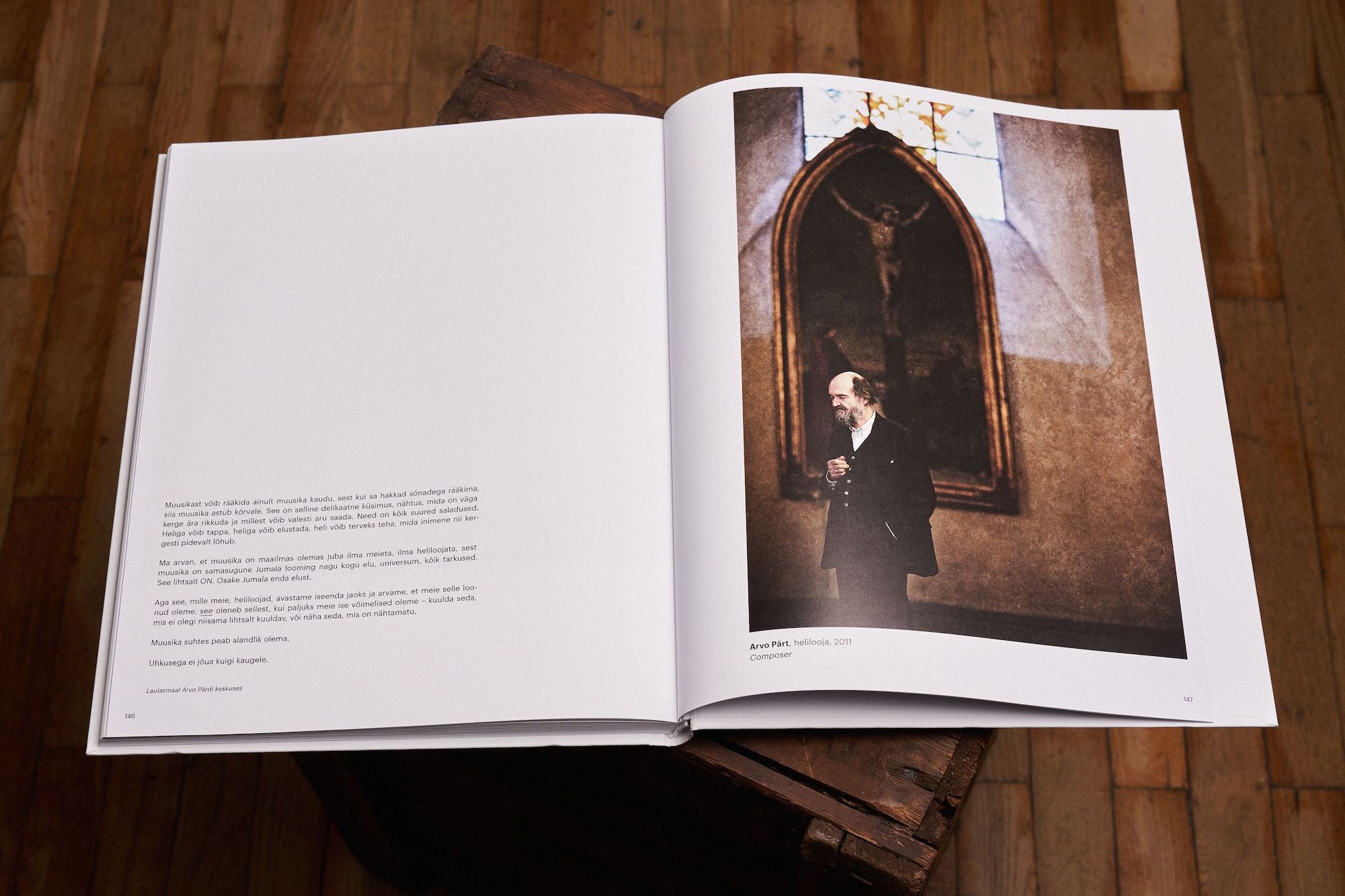 Siin raamatus on pilte nendest, keda enam meiega ei ole – Veljo Tormis, Eino Tamberg, Mati Palm, Valter Ojakäär. Siis maailmas tuntud muusikuid: Pärt, Paavo Järvi, Neeme Järvi, Erkki-Sven Tüür, Ain Anger, Tõnu Kaljuste, Kristiina Poska. Heliloojaid: Tõnu Kõrvits, Ülo Krigul, Jüri Reinvere. On noori, kellel on ees suur tulevik. Meie muusikaelu olulisi tegijaid ja alustalasid. Mõned fotod on lavastusliku kunstiambitsiooniga, nagu seesama ülalpool mainitud pilt Theodorist, Silvia Ilvese võte mere ja paadivrakiga, Eesti Raadio tütarlastekoor rabas, Maria Fausti kanaga pilt.