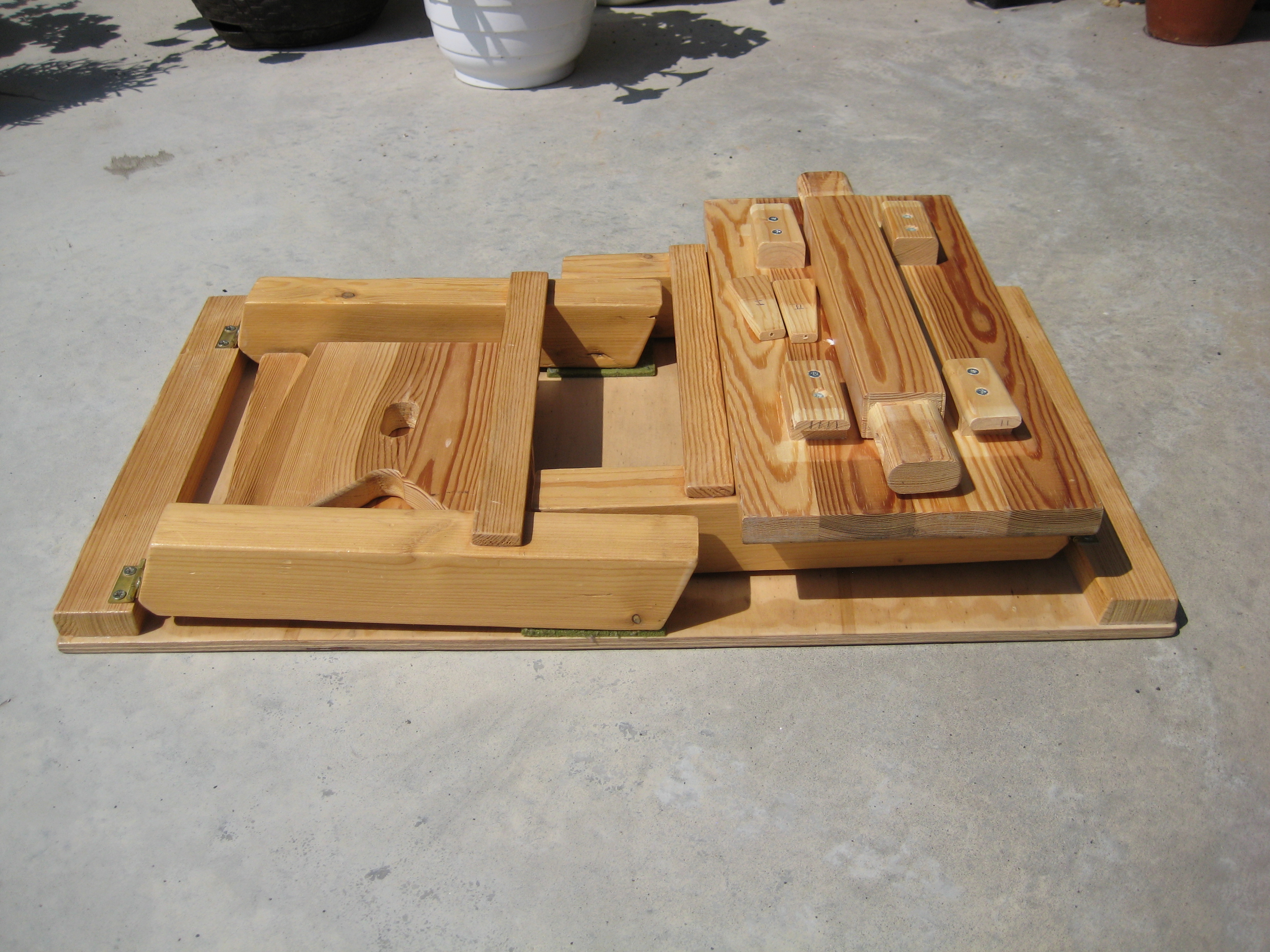 Töölauda mul polnud ja mõistuse oli suvekuumus ära sulatanud, seetõttu tegin kõik tööd äärmiselt ohtlikel viisidel ja peaaegu sõna otseses mõttes põlve otsas, seega tegemise kvaliteet oli materjaliga ilusti samal tasemel. Liiga õhukesed seinad ilmnesid olema omaette probleem (mõelda vaid, ei olnudki stabiilne nt käega peale toetudes) ja kuna ka kusagile polnud sahtli kandureid kinnitada, siis tuli mõnevõrra loominguliselt mõelda. Ja voodipesusahtli liimisin-kruvisin väga põhjalikult valesid külgi mööda kokku (ei, põhi ei olnudki mitte see kõige suurem ja laiem tükk, mida müstilisel kombel oli lausa kaks, vaid hoopis kõige kitsam jupp, mida oli vaid üks). Õnneks tegin ma mingi mõõtmisvea ka ülemise, pisema sahtliga, nii et ka see ei sobinud sellesse kasutusse. Aga, tsiteerides Bob Rossi (USA telekunstnik a la Raivo Järvi) ja tema stamplauset maalimisel juhtuvate apsude kohta: “Pole vigu, on vaid rõõmsad pisikesed juhtumused.” Väga vabastav mõte. Oma juhtumuste tõttu on mul nüüd lisaks öökapile väga hea kõrgemate äärtega serveerimiskandik (untsu läinud väiksem sahtel) ning pehmenduse ja kaanega (!) iste/tumba/mänguasjakast (untsu läinud suurem sahtel). Aga valmis sai ka see öökapike ja sellega said tehtud esimesed sammud puutöö vallas.