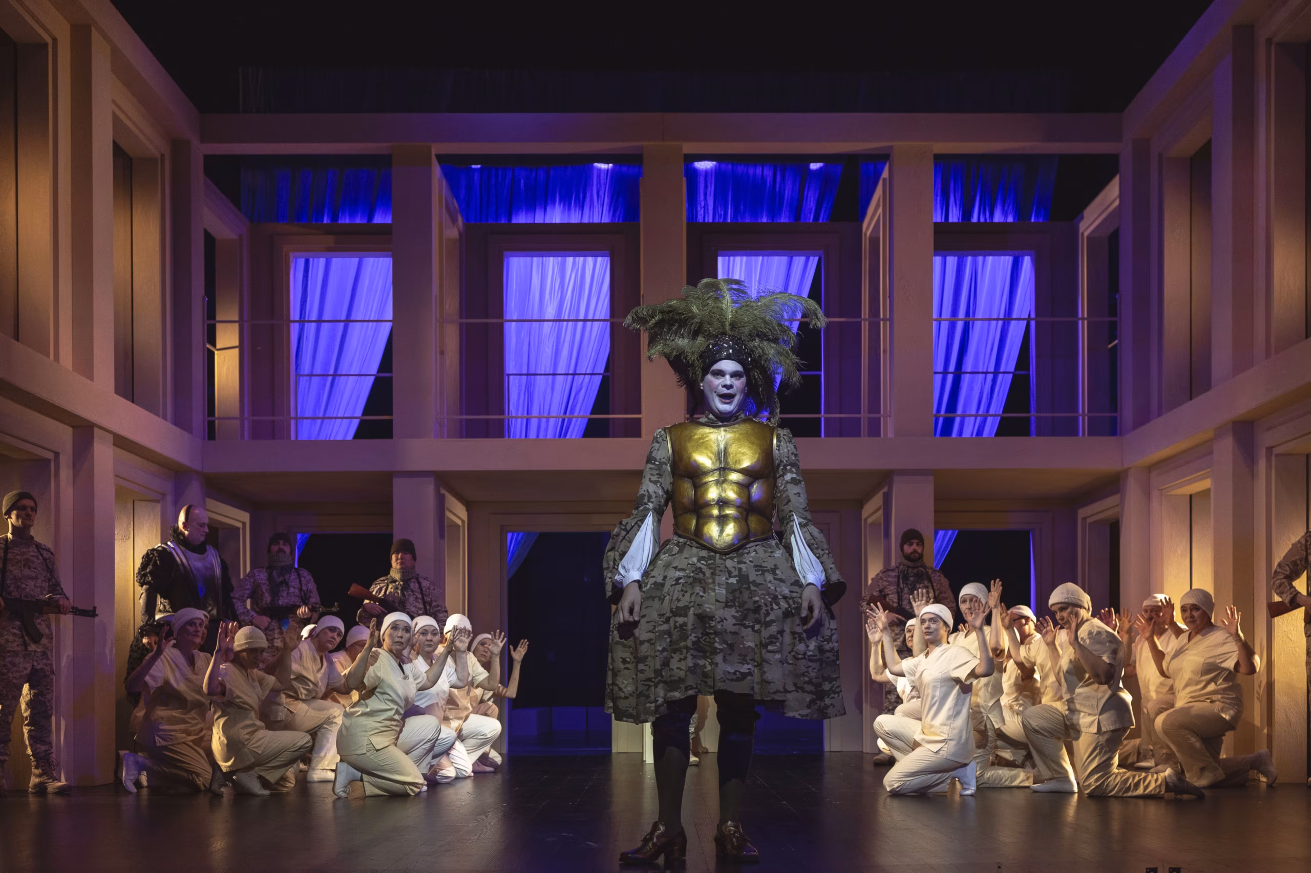 See öeldud, peab tunnistama, et “Julius Caesari” esimesed minutid ehmatasid tankide (küll miniatuursete, aga suurus pole ju oluline), püsside ja sõjaväe laigulistega. Hüva, Caesari lugu pole võimalik rääkida sõjast vaikides, samuti käib maailmas igal ajahetkel kuskil taplus. Ometi trügis kohe esiplaanile küsimus, kas tõesti teisiti, kuidagi kaudsemalt või sümboolsemalt ei saa, kui reaalse sõja lõhn ja oht nii lähedal hõljub. Aga pärast kaht esietendust lavastaja mõtetesse süvenedes hakkas selge sõja sümboolika tunduma aina enam õigustatuna.
