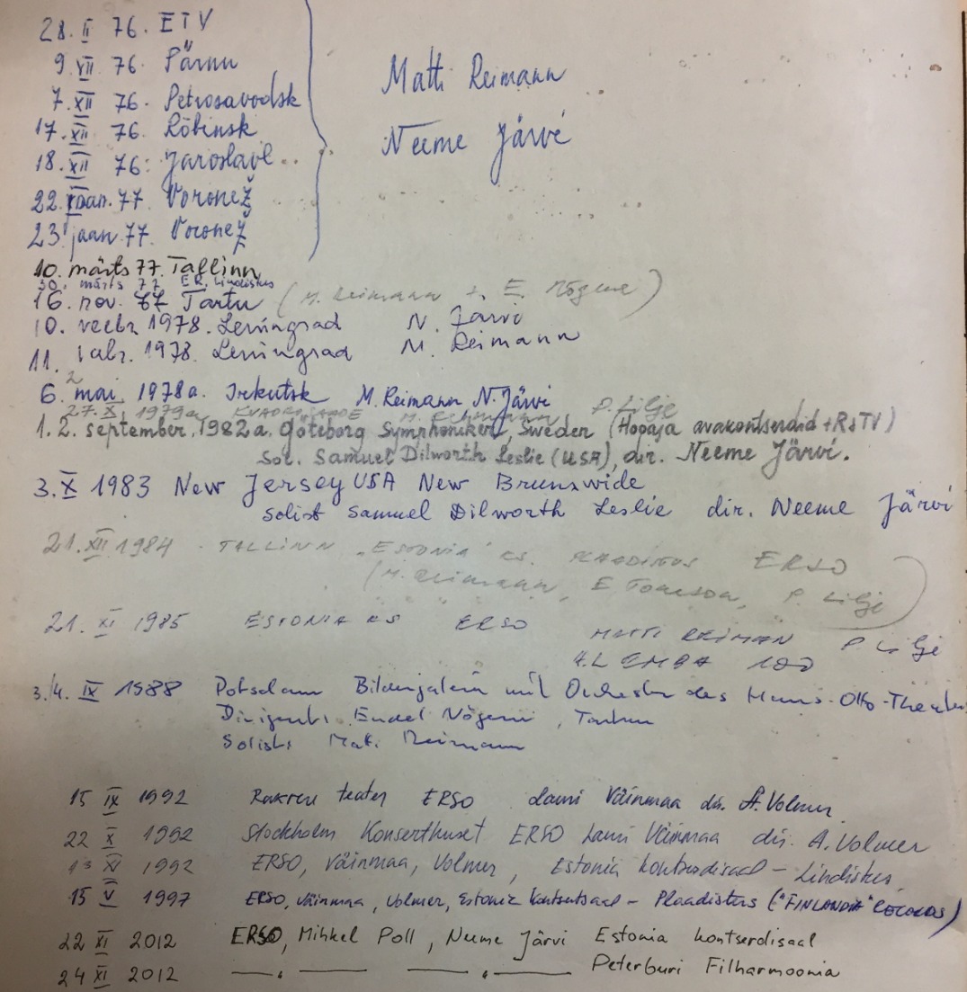 Tõuke uurida Artur Lemba 1. klaverikontserdi ettekannete ajalugu andis ERSO kauaaegne viiuldaja ja orkestri inspektor Rein Mälksoo. Tema tähelepanu pälvisid klaverikontserdi orkestripartiid, mille tagaküljele olid orkestrandid hakanud sisse kandma infot ettekannete kohta. Lähemal uurimisel selgus, et selle 1905. aastal loodud ja viis aastat hiljem redigeeritud teose esitustel on sajandi jooksul kasutatud üht ja sama noodimaterjali. Sissekanne ei sisaldanud enamasti kogu infot ettekande kohta (ehk siis nii aega, kohta, dirigendi kui ka solisti nime). Orkestrantide märkmetele toetudes koostas Mälksoo esialgse esituste loetelu.